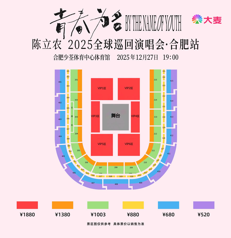 2025年12月27日,《青春为名 陈立农2025全球巡回演唱会》合肥站将于合肥少荃体育中心体育馆举办。此前演出已在上海东方体育中心、广州体育馆1号馆、武汉光谷国际网球中心、北京首都体育馆、宁波奥体中心体育馆、深圳体育中心春茧体育馆、重庆华熙LIVE·鱼洞·场馆、泉州晋江市第二体育中心主体育馆成功举办,开票即火速全网售罄,万人沉浸式般享受四面舞台带来的全方位视听盛宴,优质唱跳实力、青春限定主题、惊喜嘉宾掀起各地讨论热潮!整场演出分为流行民谣、燃爆舞曲、甜蜜情歌、爱恋情歌、青春摇滚五个部分构成,包含陈立农七年来的心血音乐作品,情歌娓娓动听,舞曲节奏明快,摇滚燃爆全场!
