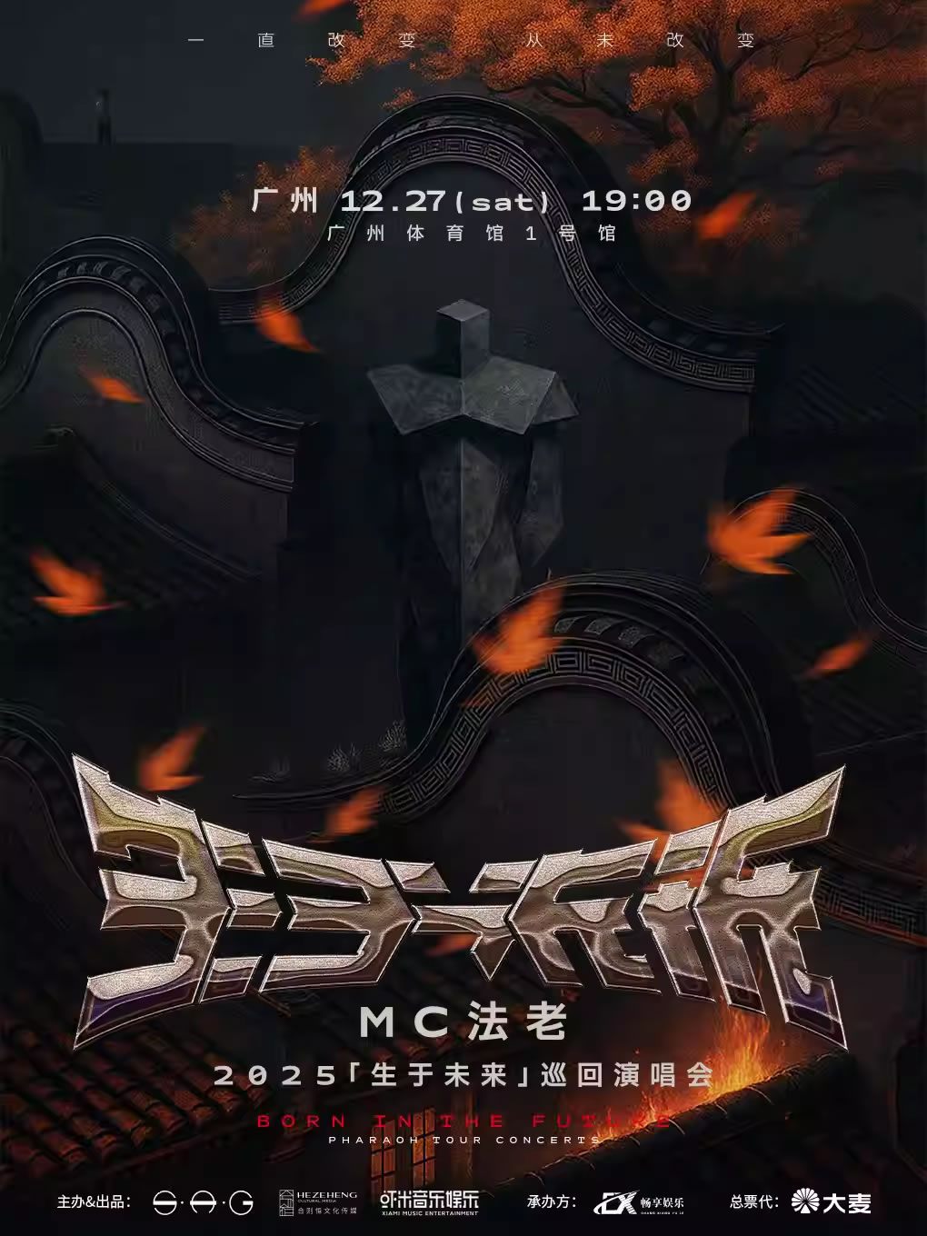 2018年,法老发布了专辑《生于未来》,将未来作为一种批判现实的镜像工具,完成了从"我"到"众"的蜕变。2025年,法老迎来了说唱生涯首轮场馆级巡回演唱会,主题同名「生于未来」,从过去走向未来,而未来也终究会成为过去,不会改变的是我们必将那一抹理想主义的年轻浪漫与诗意浇筑在中文说唱的心脏上。