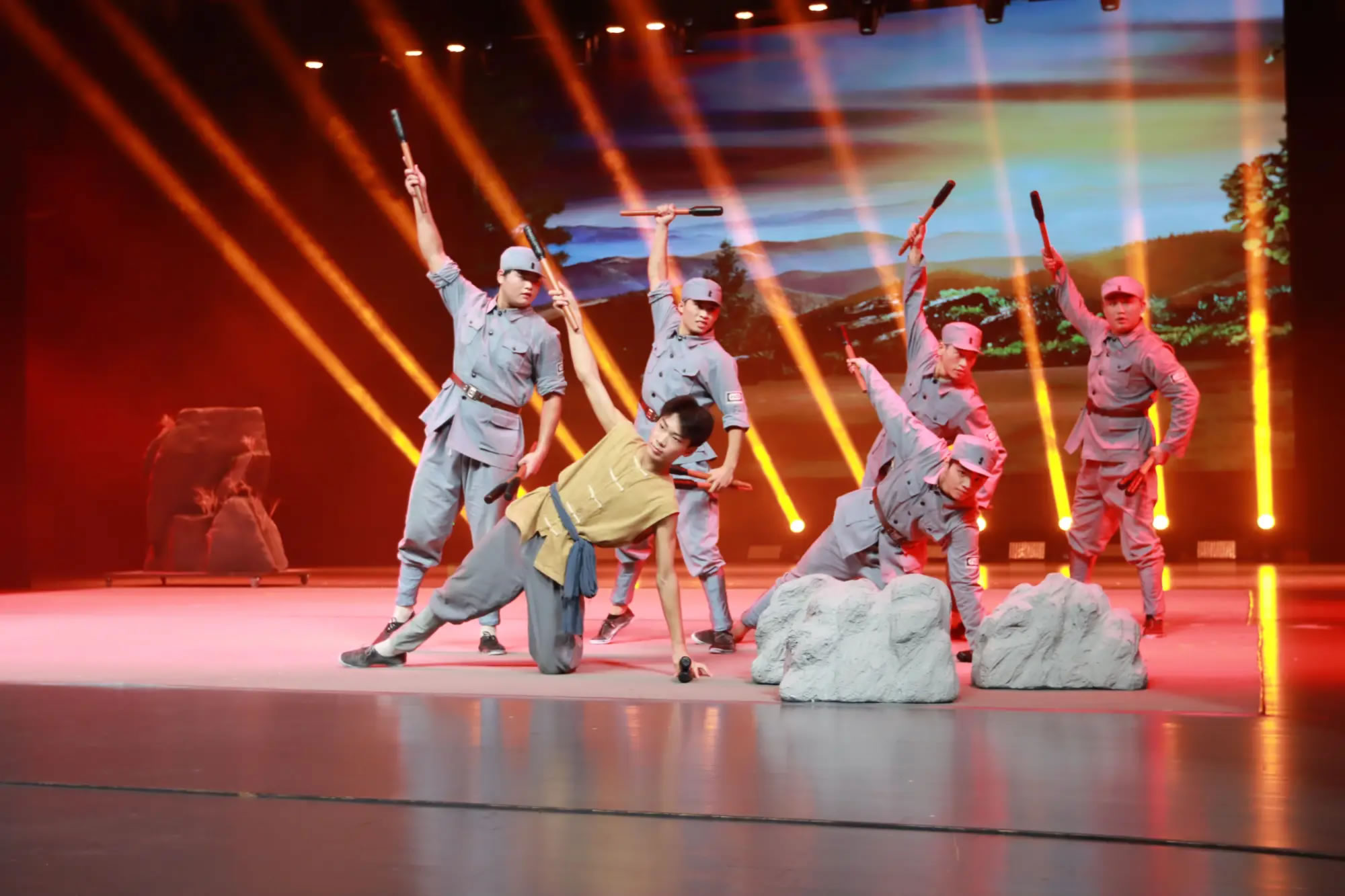 《烽火少年》是驿城区重点打造的首部原创情景杂技剧,其创作目的在于大力弘扬伟大的抗战精神,以此纪念中国人民抗日战争暨世界反法西斯战争胜利80周年。该剧以抗日战争这一宏大的历史背景为依托,巧妙地将杂技、魔术、武术、舞蹈等多种艺术形式融合在一起。全剧通过“田野童趣、血海深仇”“泪眼曙光、战友情深”“情报速递、胜利号角”三个篇章,生动地讲述了铁柱、牛娃、三宝这三个农村孩子在战火纷飞中被八路军收养,在历经重重磨炼后,成长为坚定共产主义战士的感人故事。