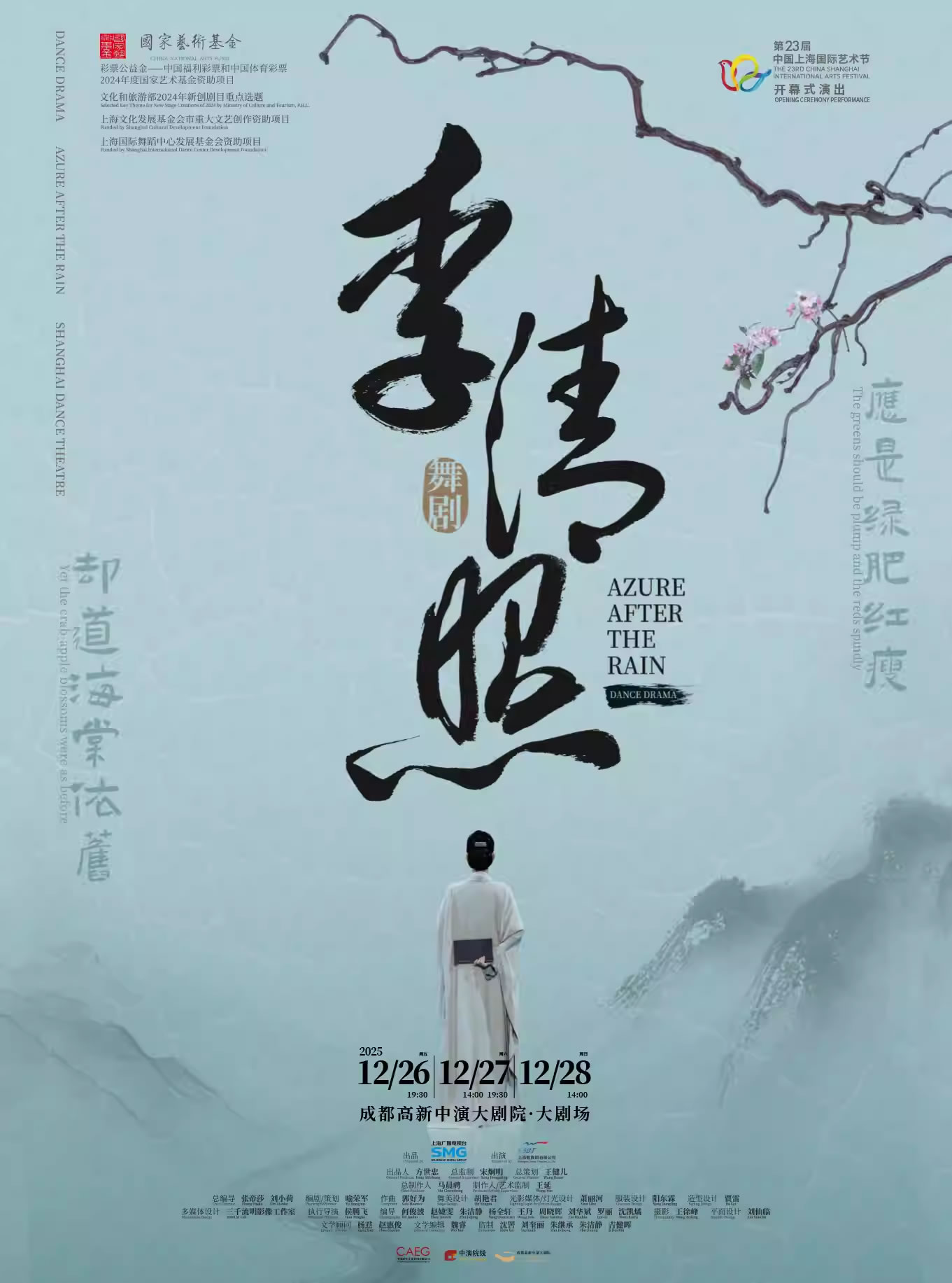 为弘扬中华优秀传统文化,赓续中华文脉,坚定文化自信自强,上海歌舞团全新推出中华优秀传统文化题材舞剧《李清照》,该剧以宋代著名女词人李清照起伏跌宕的人生为主要线索,以其著名诗词词牌名为引,用当代视角展现“千古第一才女”“一代词宗”李清照的浪漫唯美、大气磅礴的精神世界,弘扬家国情怀,传播中华优秀传统文化。该剧已入选上海市文化发展基金会重大文艺创作项目、文旅部2024新创剧目重点选题,并获得国家艺术基金的支持。2024年10月17日,第二十三届上海国际艺术节开幕之际,上海歌舞团历时两年倾力打造的“新国风”原创舞剧《李清照》在上海文化广场隆重首演。