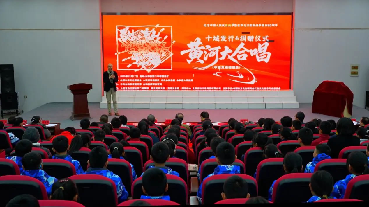 12月17日,《〈黄河大合唱〉的故事》发行暨捐赠仪式在山西临汾市永和县举行。该书是人民音乐出版社继《黄河大合唱》简谱本、《黄河——钢琴协奏曲》后的创新之作,以中英双语搭配非遗剪纸插图,还原作品传唱历程,兼具史料、艺术价值与国际传播力。