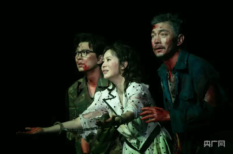 舞台呈现上,本轮复排在结尾进行了富有冲击力的调整。当角色们在绝境中刻下象征胜利的“V”字后,审讯的光束突然穿透舞台边界,扫向观众席,制造一种“历史逼视现实”的效果,强化作品的现实性与参与感。灯光、声音与极简布景之间形成冷与热、黑与亮的对比,使观众在视觉压迫中进一步感受到角色的精神重量。