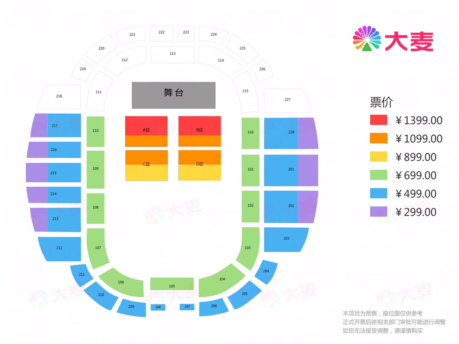 票价:299元、499元、699元、899元、1099元、1399元