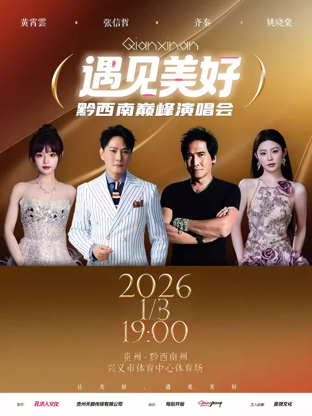 张信哲、齐秦、黄霄雲、姚晓棠四大实力唱将齐聚兴义。