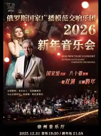 俄罗斯国家广播模范交响乐团,邀您聆听新年华彩乐章。大气磅礴的交响音乐会,甄选施特劳斯经典名曲、柴可夫斯基经典芭蕾名曲、前苏联经典名歌、中国经典作品,为您奉上一台精心策划的2026新年音乐会,伴着经典的音乐,熟悉的旋律,洋溢着神圣、纯净、浪漫、高雅的氛围,使您在欢快的享受中,拥抱新年的美好,沐浴祥和的祝福!