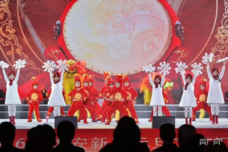 演出在气势恢宏的开场舞《盛世“鼓”舞》中拉开序幕。来自各行各业的职工代表、非遗项目传承人、新建片区各学校的孩子们以及社区广场舞团队同台献艺。