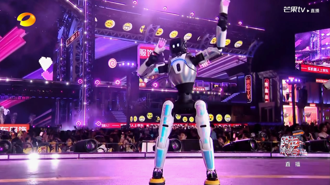 2025年12月31日,智元机推出首个“能文能武,唱跳全能”的机器人艺人天团登上京东《2025-2026 湖南卫视芒果 TV 跨年演唱会》,灵犀X2、远征A2、精灵G2、四足机器人D1的全能表现炸场跨晚,不仅与王心凌、王鹤棣同台演出,还化身机器人艺人走红毯、上舞台走秀、进入直播间卖货,用科技与文娱的碰撞,打造跨年夜现象级名场面。