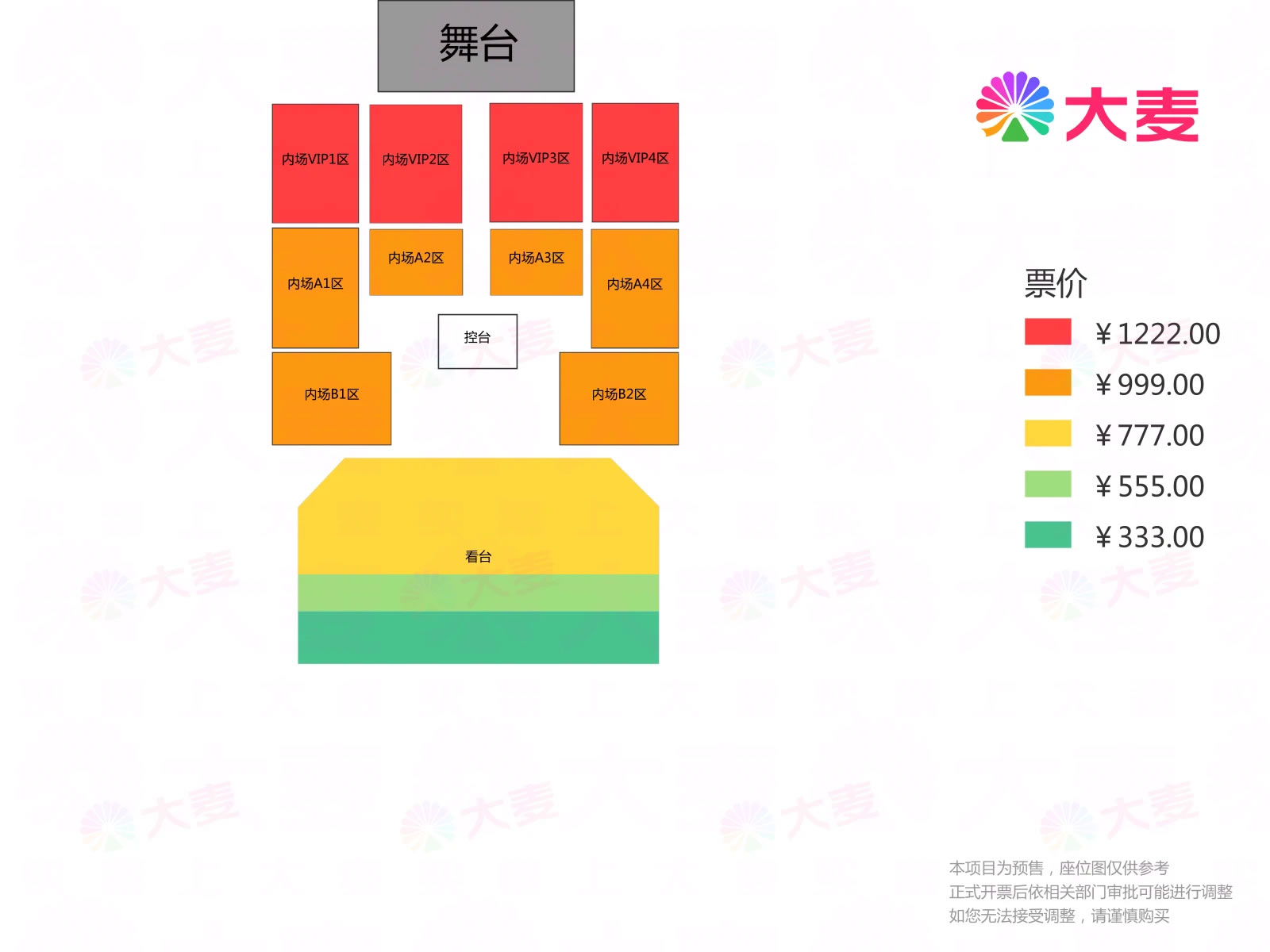 票价:333元、555元、777元、999元、1222元