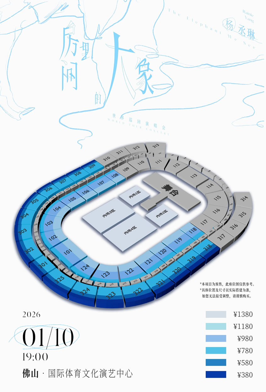 《房间里的大象》世界巡回演唱会首唱将于25年12月31日揭开序幕,初闻演唱会名称容易令人先入为主地认为是一个相当静的主题,但且让杨丞琳用音乐为媒介,传达「我们每个人心中都有一头大象,但别怕,至少我们在同一个房间」,举凡身心的高低起伏都将对应她歌曲的各色迥异,与所有人一起在现实与自我间,找到与世界和解的方式。
