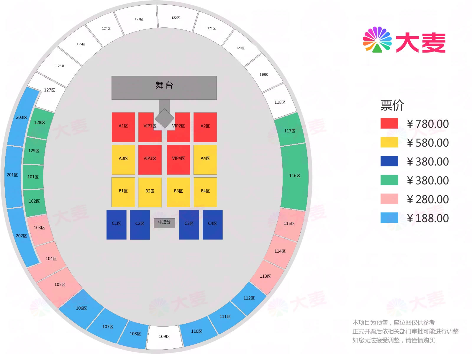 票价:188元、280元、380元、580元、780元
