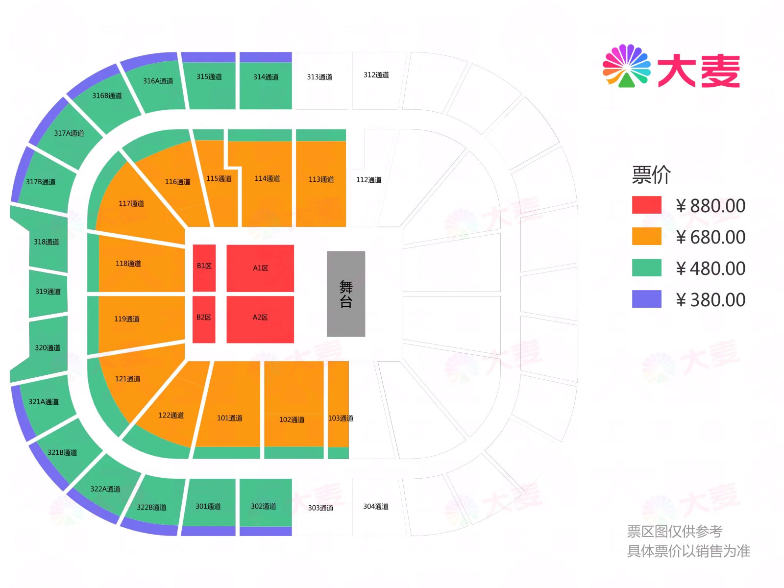 票价:380元、480元、680元、880元