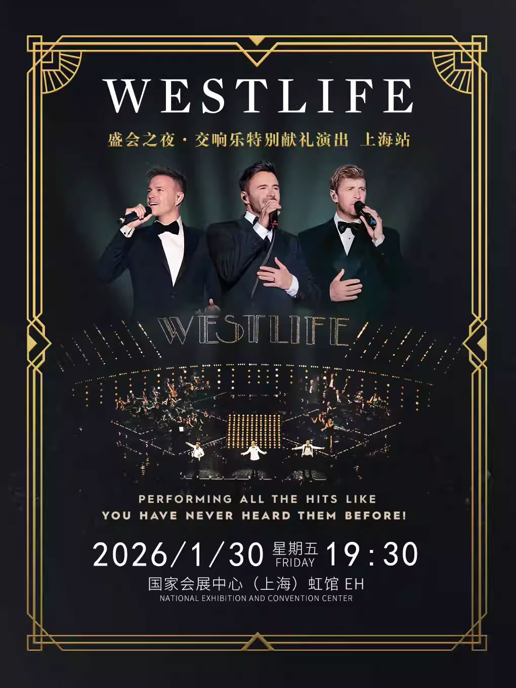 此次「盛会之夜·交响乐特别献礼演出」上海站,Westlife(西城男孩)将为中国乐迷首次带来他们以交响乐编制全新演绎的经典歌曲。演出将由专业交响乐团现场演奏,与Westlife(西城男孩)标志性的人声和声深度融合,缔造难忘的现场听觉体验。