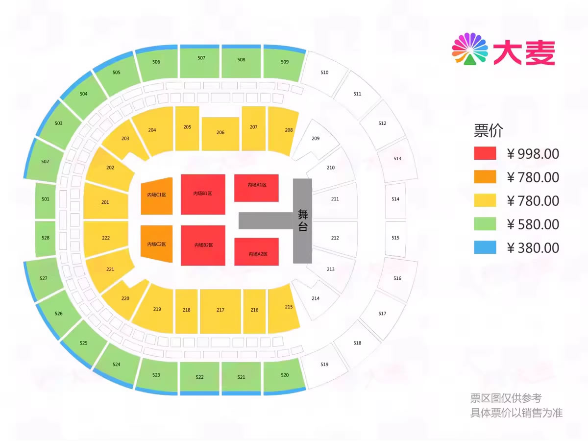 票价:380元、580元、780元、998元