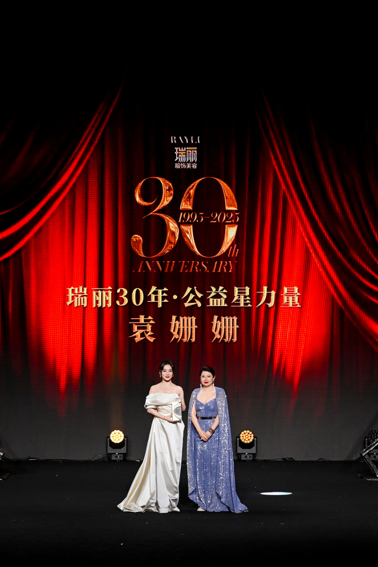 《瑞丽服饰美容》出版人石璐女士为袁姗姗颁发瑞丽30年·公益星力量奖项