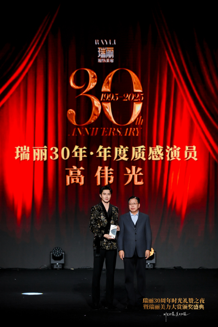 中国轻工业出版社有限公司党委书记、董事长王献新先生为高伟光颁发瑞丽30年·年度质感演员奖项