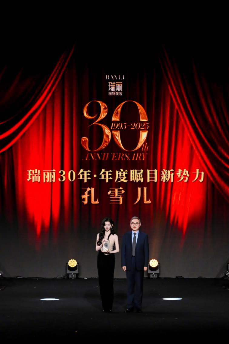 北京《瑞丽》杂志社有限公司董事长陈业进先生为孔雪儿颁发瑞丽30年·年度瞩目新势力奖项