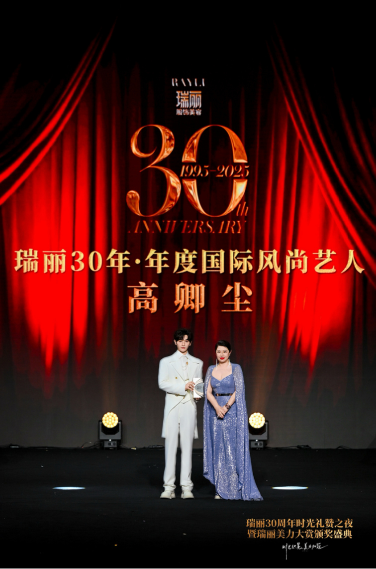 《瑞丽服饰美容》出版人石璐女士为高卿尘颁发瑞丽30年·年度国际风尚艺人奖项
