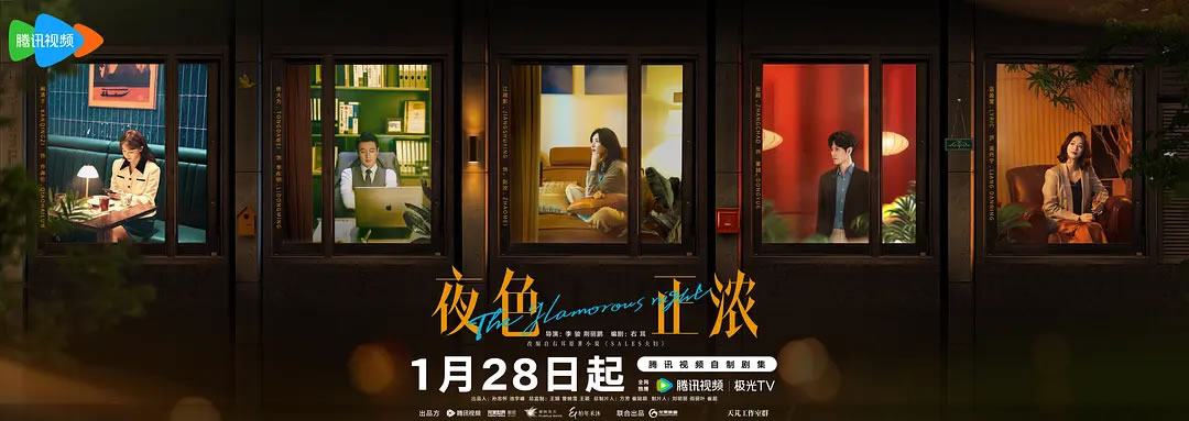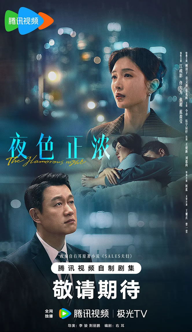 《夜色正浓》是由腾讯视频、完美世界影视、柏年禾沐影业出品,龙果映画联合出品,李骏、荆丽鹏执导,右耳编剧,江疏影、佟大为、张超、蓝盈莹领衔主演,阚清子、袁文康、张兆辉特邀主演,令卓、伍宇辰柠、王建新、刘恩尚主演,柯蓝特别出演,王耀庆、曾一萱友情出演的都市众生相情感猛剧。该剧于2026年1月28日在腾讯视频全网独播。1月29日在江苏卫视独播。