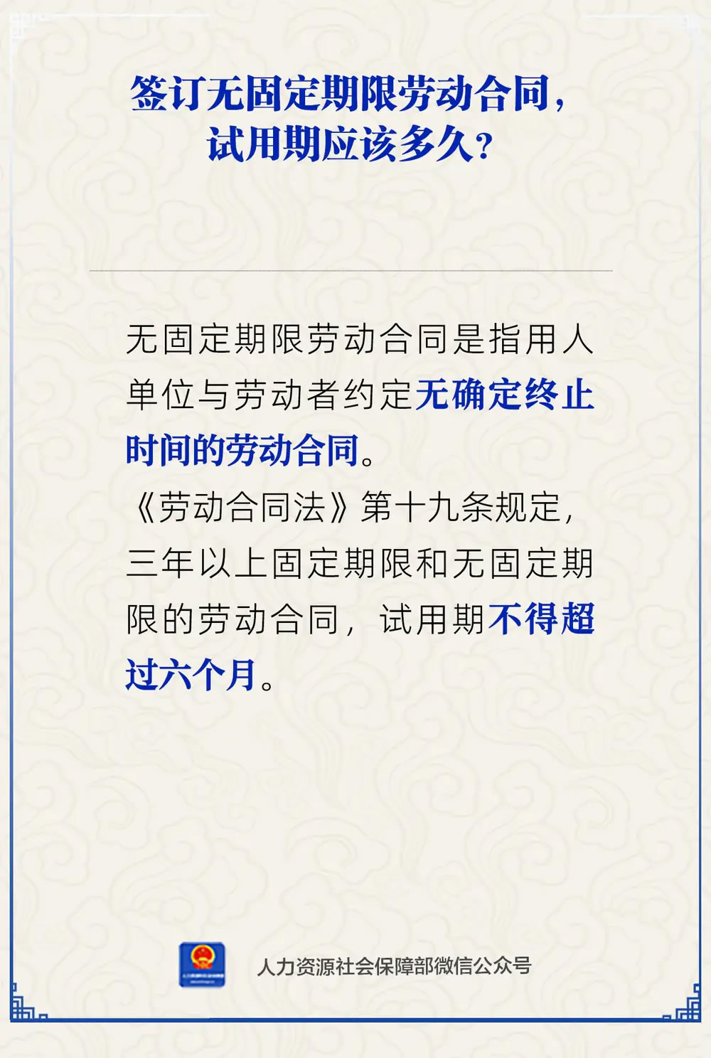 中新网2月3日电 签订无固定期限劳动合同,试用期应该多久?人社部2月3日通过官方微信公众号作出解答。
