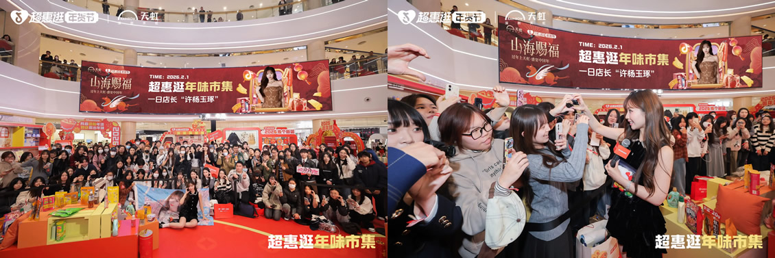 “超会逛”的人,已经在商超开启了惊喜邂逅!2月1日,深圳天虹“超惠逛年味市集”带大家充分感受新春的喜悦,许杨玉琢化身“一日店长”空降现场,超多粉丝奔赴互动合拍,在欢笑中解锁心动体验;年货大作战、年货节集福地图等一系列趣味游戏,吸引了一众市民朋友加入挑战,不少人都在轻松的互动中收获了自己的年货奖品,新春的欢乐氛围感染着到场的每一个人。