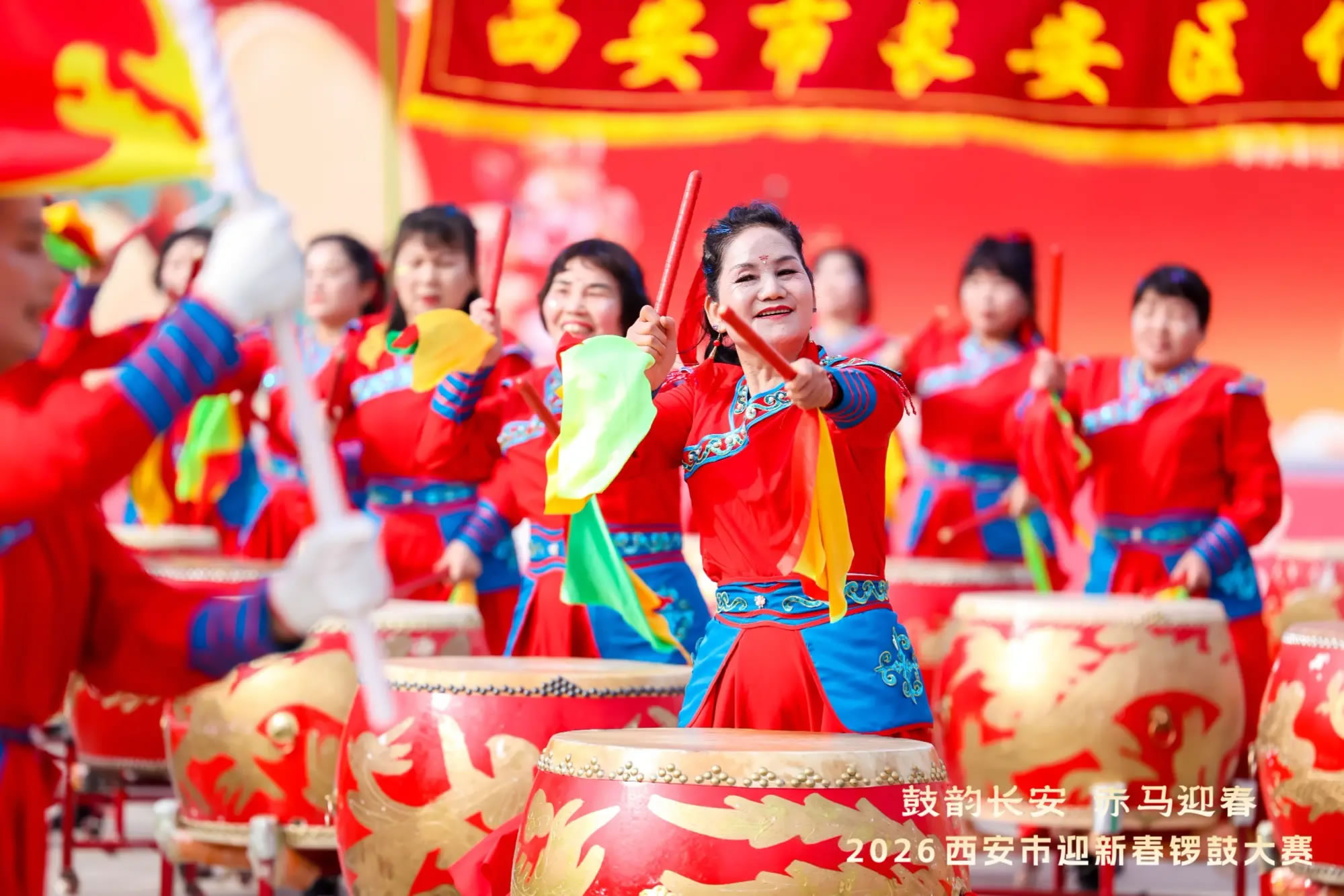 央广网西安2月28日消息(记者苏睿楠)赤马踏云送福至,赳赳秦鼓耀长安。2月26日,“鼓韵长安 赤马迎春”2026西安市迎新春锣鼓大赛在汉城湖封禅天下广场举行。来自西安市11个涉农区县及开发区的代表队共500余名锣鼓队员齐聚一堂、同场竞技,以震天鼓乐礼敬新春,用铿锵节奏讴歌时代,为现场观众献上了一场气势恢宏、视听震撼的民俗文化盛宴,让广大市民游客在铿锵鼓点中感受最纯粹的年味。