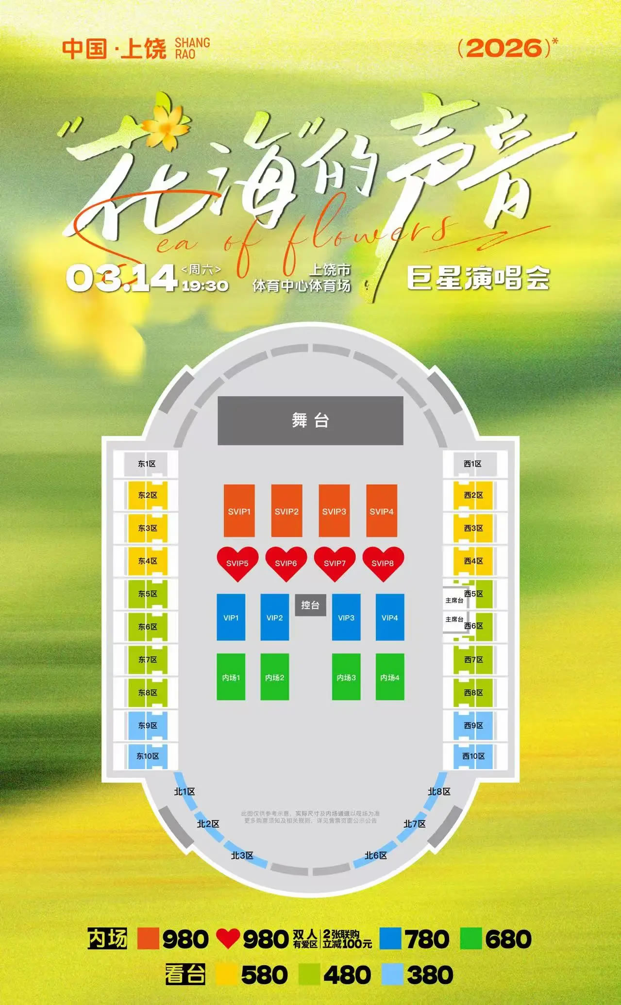 票价:380元、480元、580元、680元、780元、980元