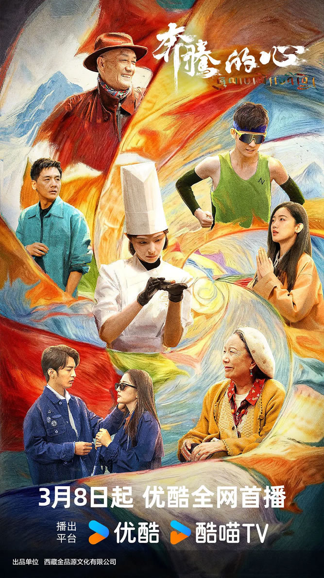 《奔腾的心》由《格桑花开》、《喜马拉雅味道》、《丹增的脚步》、《盲》四个单元篇章构成。剧情以公路、美食、体育、爱情等类型角度展开,用轻快明亮的叙事节奏,围绕藏地心灵治愈之旅、美食文化传承、代际情感对话及青春励志成长等多元主题,生动刻画出当代青年在西藏这片辽阔土地上探索生命真谛、完善自我、传递温暖的动人经历。