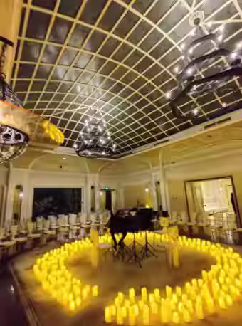利顺德博物馆,这座矗立在天津核心地段的百年建筑,藏着城市的岁月肌理,每一块砖、每一扇窗都镌刻着时光的故事。当夜幕降临,暖黄的烛光在复古穹顶下摇曳,将欧式典雅与中式底蕴交融的空间晕染成梦幻秘境。小提琴的悠扬、大提琴的深沉,顺着烛光的轨迹流淌,《蓝色多瑙河》的轻快、《卡农》的缠绵、《致爱丽丝》的温柔,每一段旋律都与百年建筑的底蕴碰撞,仿佛穿越时光,与往昔岁月深情相拥。