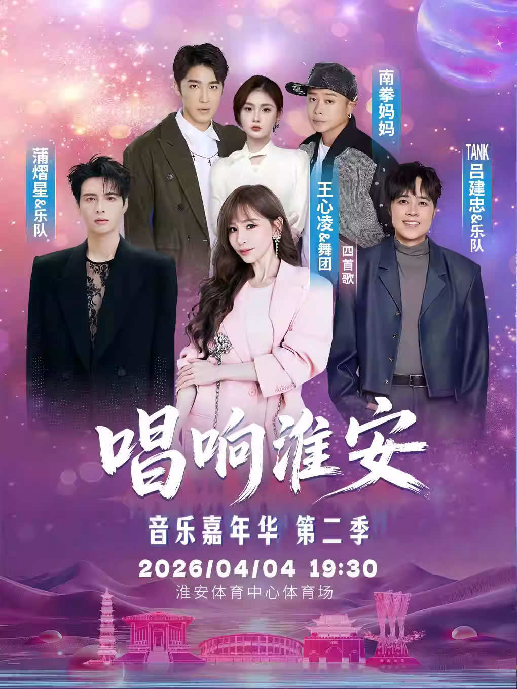 从耳机里的旋律到现场的狂欢;从青春的回忆到当下的热爱,唱响淮安音乐嘉年华第二季,在运河之都的春日夜晚,让我们跟着王心凌的甜歌起舞,跟着蒲熠星的旋律成长,跟着TANK的摇滚热血,跟着南拳妈妈的青春回忆,共同解锁一场属于淮安的春日嘉年华。
