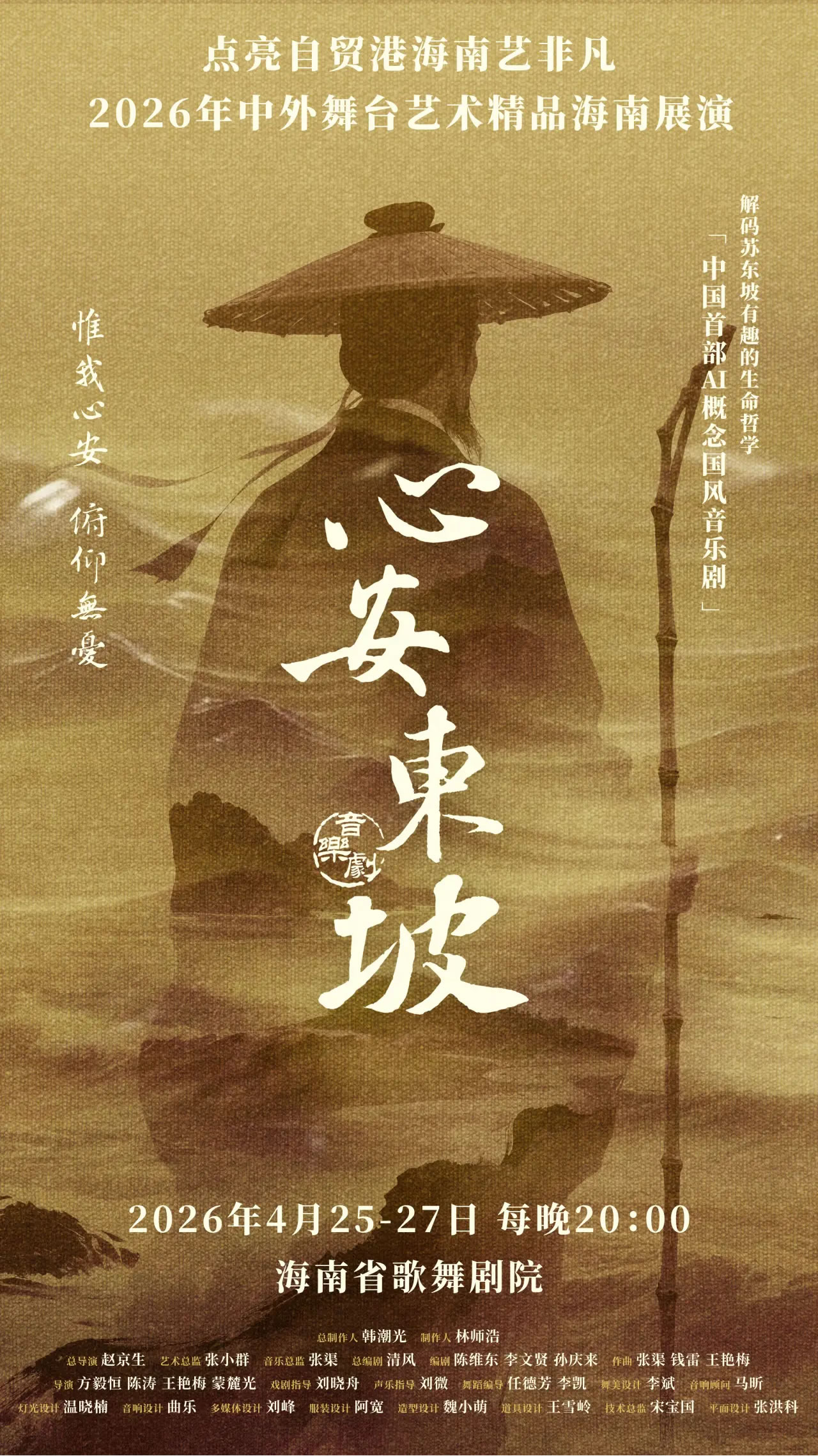 作为第三届中国(海南)东坡文化旅游大会的开幕大戏,《心安东坡》于2025年11月在澄迈完成户外版首演,现场近千名观众沉浸式观演,收获如潮好评,也得到业内专家的高度认可。此次全新打磨的剧场版,在保留户外版核心精髓的基础上完成全面升级,以更精致的艺术呈现,为观众带来更极致的观演体验。