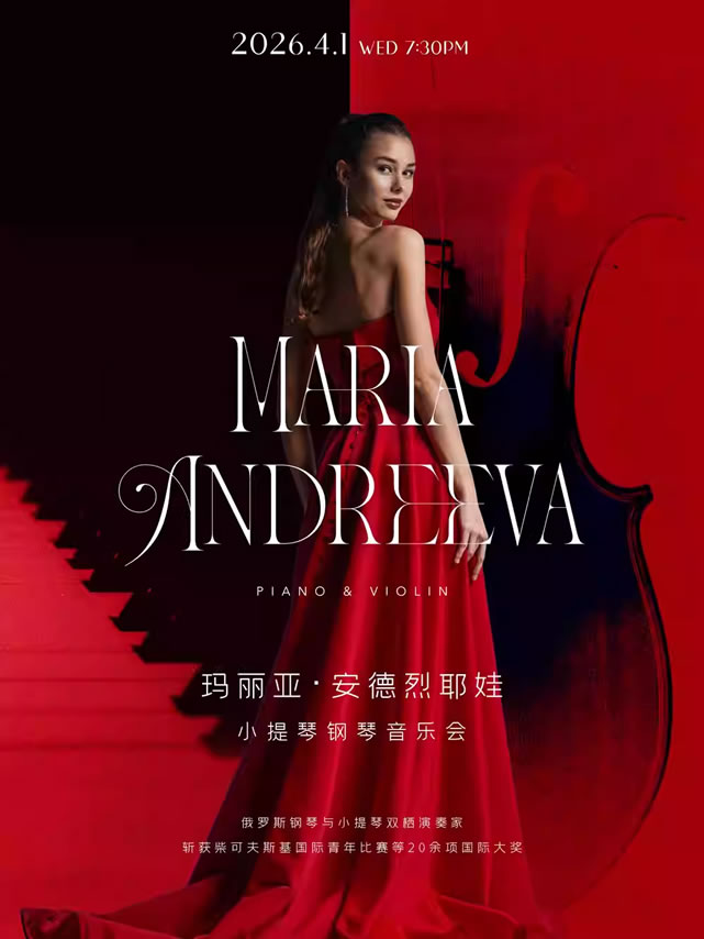 ●玛丽亚・安德烈耶娃:俄罗斯钢琴与小提琴双栖演奏家,斩获柴可夫斯基国际青年比赛等20余项国际大奖,获俄罗斯联邦总统表彰及感谢信。多国巡演并亮相莱茵高、莫扎特等国际音乐节,与俄国家管弦乐团等顶级乐团深度合作。2023 年任莫斯科音乐厅首席独奏家,以钢琴与小提琴双重造诣,成为国际古典乐坛瞩目焦点。