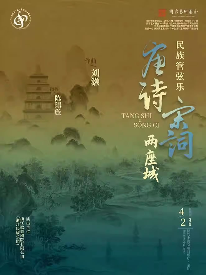 大型民族管弦乐作品《唐诗·宋词两座城》以唐诗宋词下的长安及杭州作为切入点,洞悉文字背后的文化,用音乐语言勾勒长安的繁华,杭州的柔美之境,《唐诗·宋词两座城》共八个乐章,每一乐章给现众重现当年唐诗宋词下作者的实景、实情、实感。