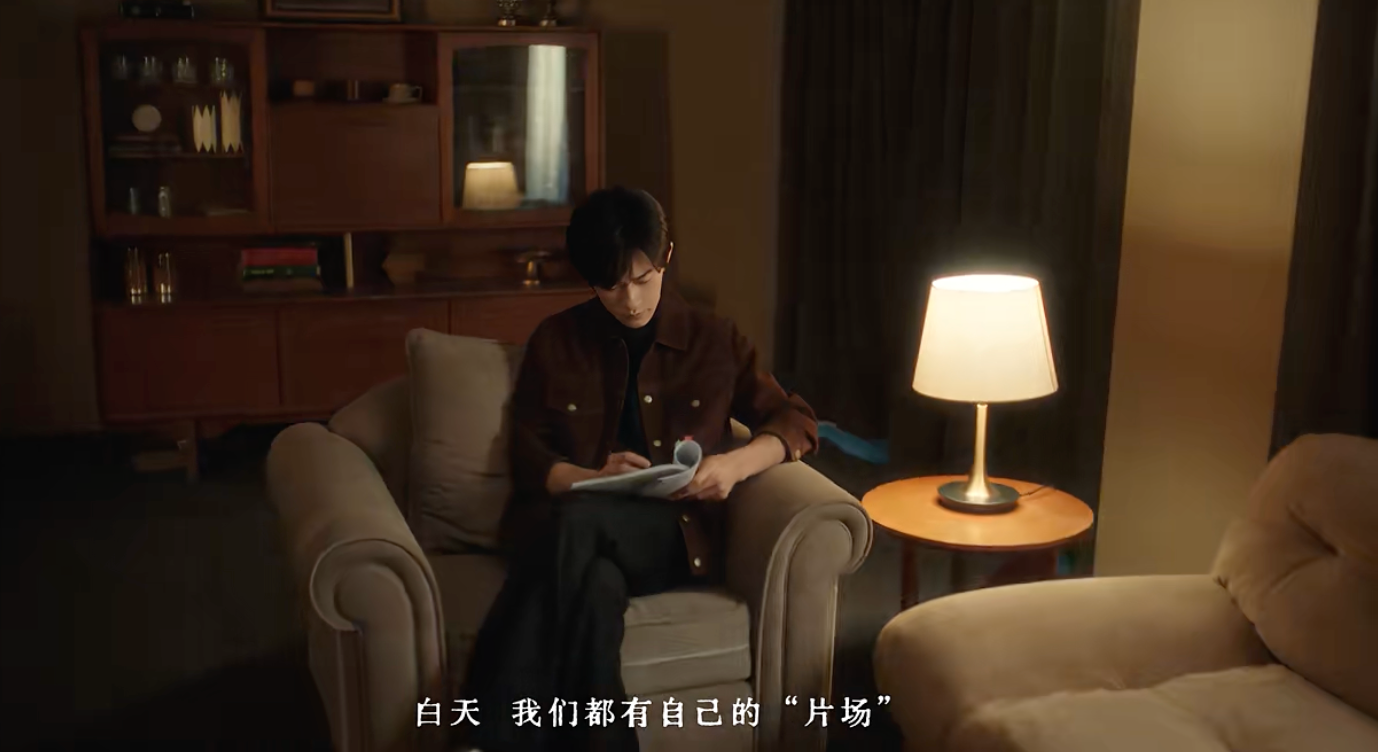 《我的1/3答案》从这一困境切入,易烊千玺扮演的角色是一个在喧嚣世界中的“追问者”,观众透过他的视角,看到一个在快节奏夹裹中疲于奔命的自己——白天穿行于片场中,不停核对需求,回复“收到”,像陀螺一样旋转,直到夜深人静,生命陷入失重。抛去顶流光环,他折射了千千万万个普通人的生存状态。