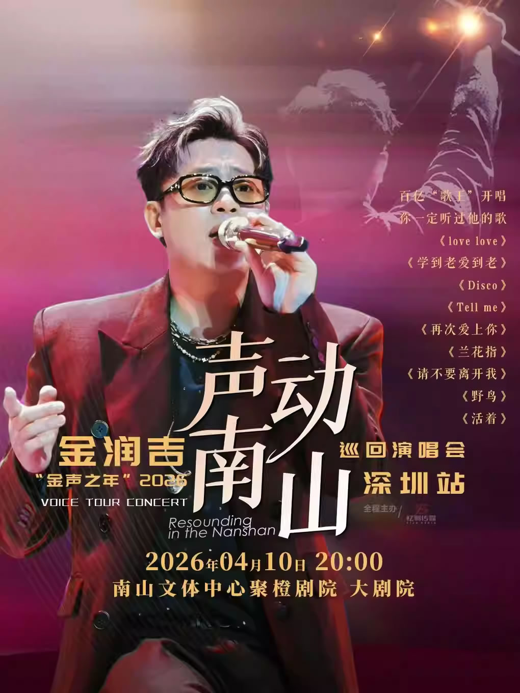2026金润吉将带来一系列经典和新作,为观众呈现一场视听盛宴,不要错过!