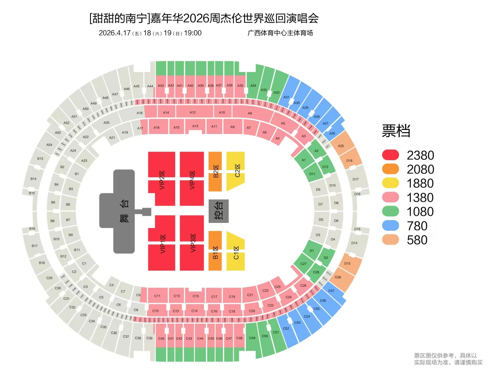 票价:580元、780元、1080元、1380元、1880元、2080元、2380元