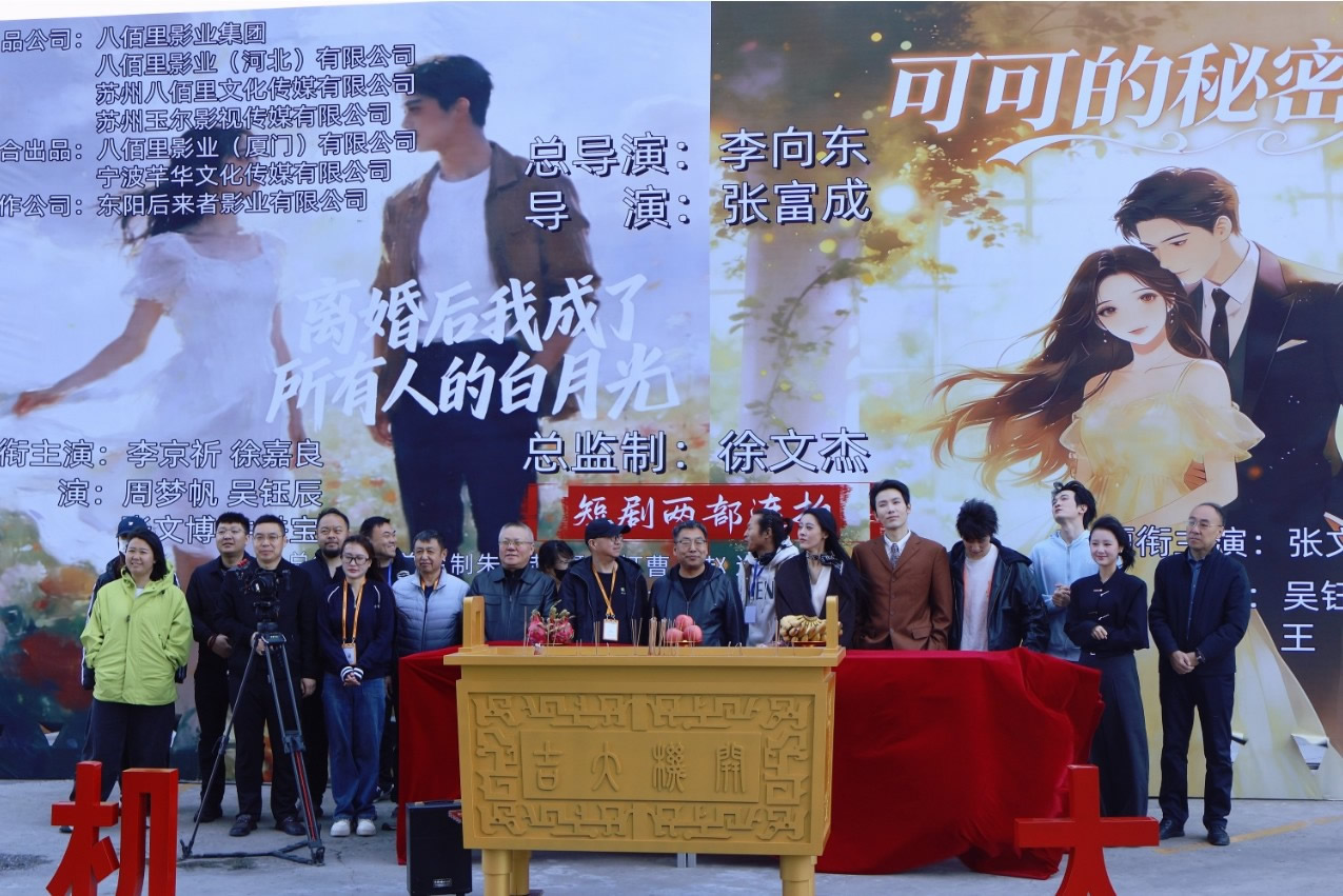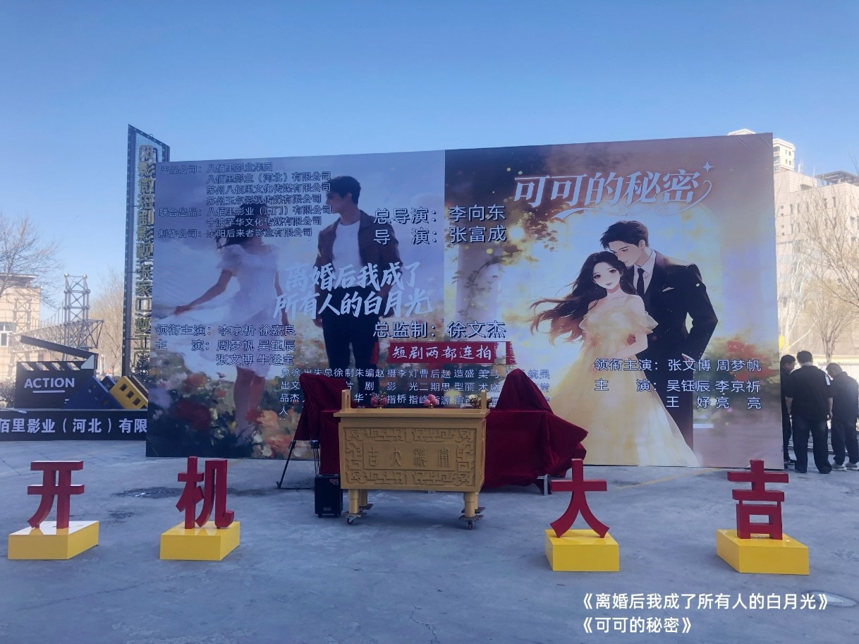 由八佰里影业集团、八佰里影业(河北)有限公司、苏州八佰里文化传媒有限公司、苏州玉尔影视传媒有限公司出品,八佰里影业(厦门)有限公司、宁波芊华文化传媒有限公司联合出品,东阳后来者影业有限公司制作的短剧《离婚后我成了所有人的白月光》《可可的秘密》于2026年4月10日在张家口风影片场正式开机。此剧总出品人为徐文杰,出品人朱华、赵一丰,总制片人徐文杰,制片人朱华、赵一丰,由徐文杰担任总监制,总导演李向东,导演张富成。