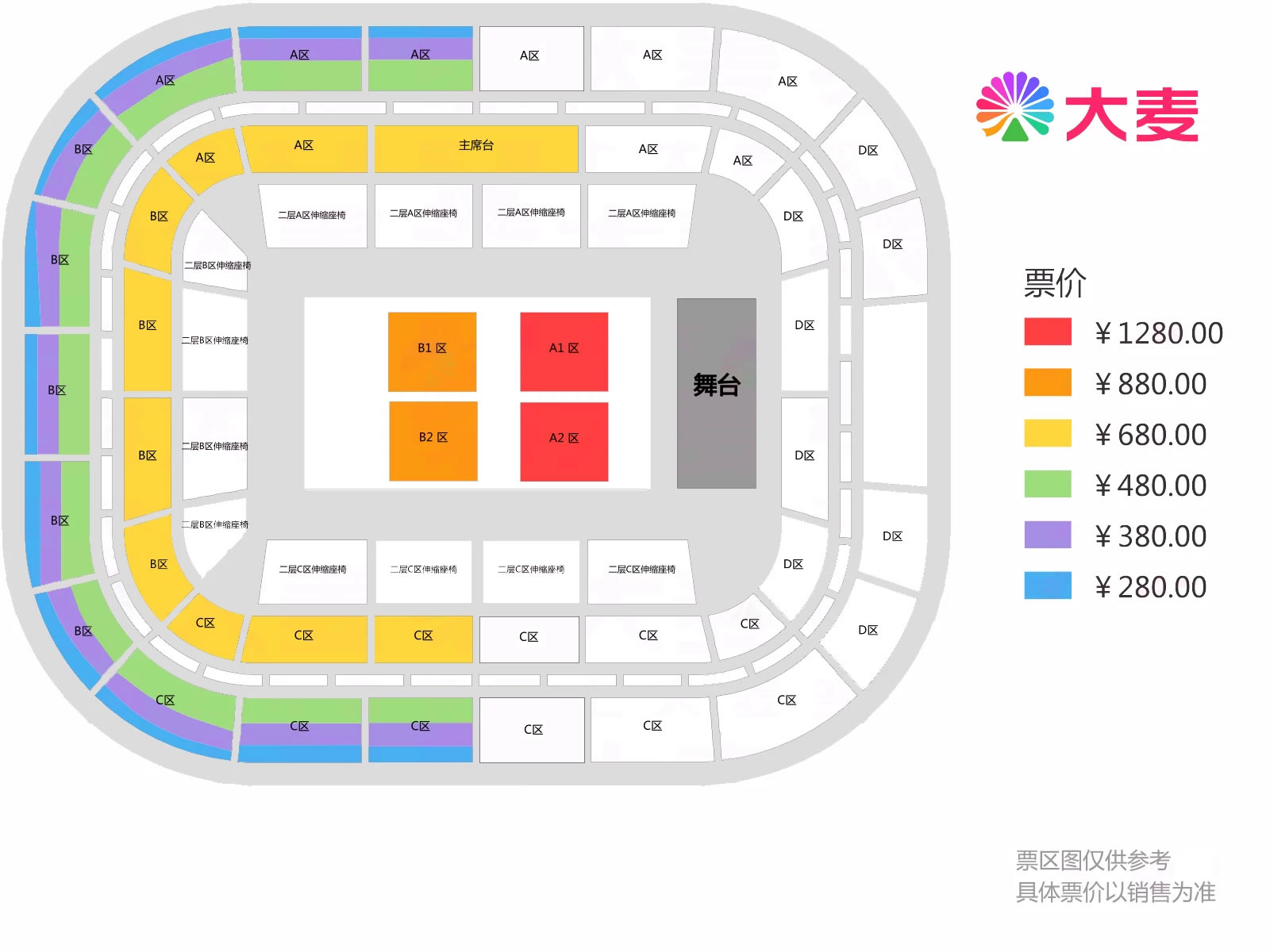 票价:280元、380元、480元、680元、880元、1280元