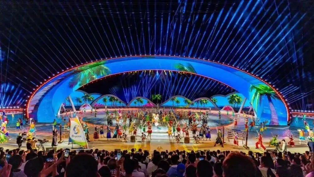 在亚沙公园内,开幕式已进入最后微调阶段。吉祥物“亚亚”活跃于指环剧场之中,三大篇章文艺表演——“天海燃情”“深海逐梦”“联通四海”将于4月22日晚上演。这场全长75分钟的开幕式,承载着三亚对亚洲体育的庄重承诺。以三亚湾、天涯海角礁石群为天然背景,舞台“阳光之环”与海天线融为一体,实现“天为幕、海为台、沙为席”。海南坡鹿“亚亚”全程串联,骑沙滩摩托登场,融合黎苗民俗与现代活力,开创吉祥物叙事先河。开幕式上,日出大海意象、沉浸式互动、国际化青春表达、机器人与数控光影科技、黎锦苗绣文化植入、全流程绿色低碳等六大核心特色将彰显“活力、开放、欢乐”氛围。