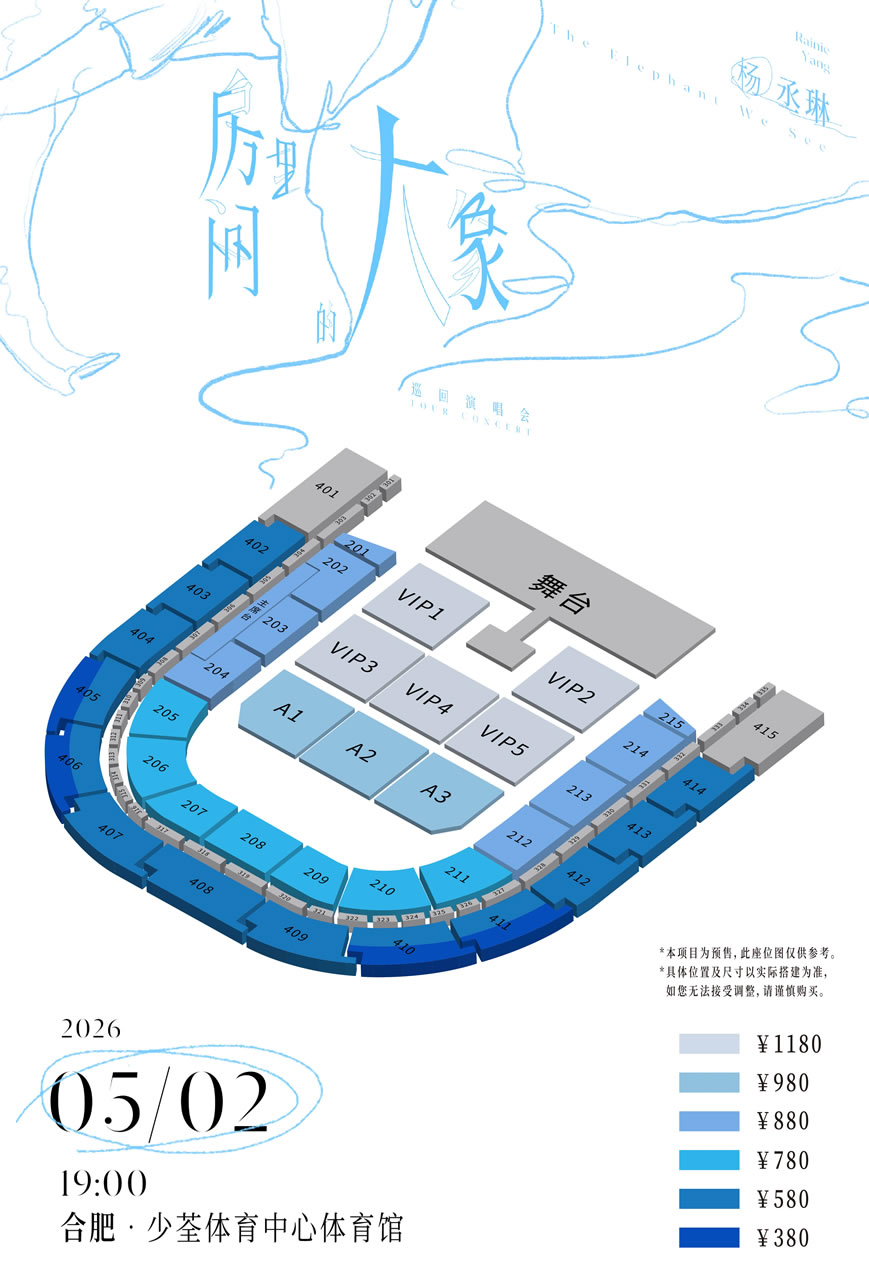 《房间里的大象》世界巡回演唱会首唱将于25年12月31日揭开序幕,初闻演唱会名称容易令人先入为主地认为是一个相当静的主题,但且让杨丞琳用音乐为媒介,传达「我们每个人心中都有一头大象,但别怕,至少我们在同一个房间」,举凡身心的高低起伏都将对应她歌曲的各色迥异,与所有人一起在现实与自我间,找到与世界和解的方式。