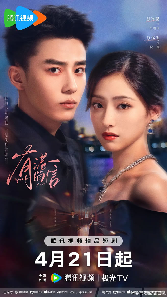 《有港回信》是由罗健玮执导,霄夜编剧,马延琨、张金萍、周宇担任总策划,李啦、张金萍、张晓宇担任总制片人,胡连馨、赵华为领衔主演的爱情剧。该剧于2026年4月21日在腾讯视频全网独播。