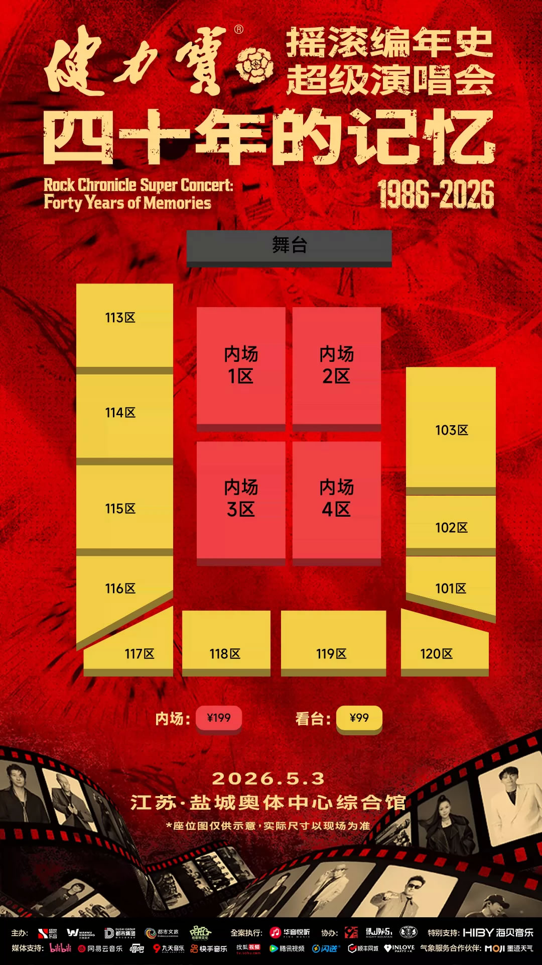 从1986年到2026年,中国摇滚已走过四十载峥嵘岁月 。四十年间,摇滚从萌芽到兴盛,是无数人青春岁月里最震耳欲聋的BGM,承载着几代人的热血与梦想。2025年,“健力宝·摇滚编年史超级演唱会”以11亿的社交媒体热度震动全国,被乐迷誉为“中国摇滚复兴的里程碑”。2026年5月3日至5月5日,这场现象级的摇滚盛宴将再度升级,正式登陆江苏·盐城奥体中心。以“四十年的记忆”为名,设置《记忆的盒子》、《无尽的守望》、《永远的乌托邦》三大主题,更以顶级的演唱会标准打造视听现场 。