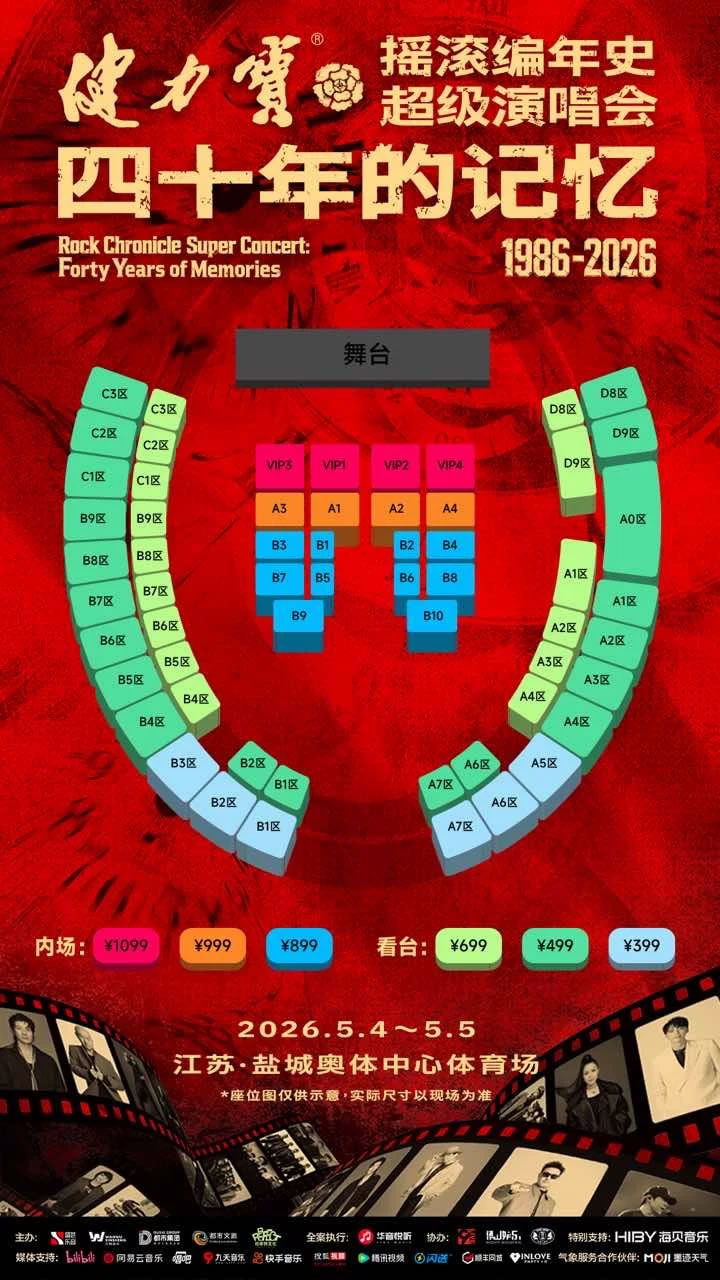 从1986年到2026年,中国摇滚已走过四十载峥嵘岁月 。四十年间,摇滚从萌芽到兴盛,是无数人青春岁月里最震耳欲聋的BGM,承载着几代人的热血与梦想。2025年,“健力宝·摇滚编年史超级演唱会”以11亿的社交媒体热度震动全国,被乐迷誉为“中国摇滚复兴的里程碑”。2026年5月3日至5月5日,这场现象级的摇滚盛宴将再度升级,正式登陆江苏·盐城奥体中心。以“四十年的记忆”为名,设置《记忆的盒子》《无尽的守望》《永远的乌托邦》三大主题,更以顶级的演唱会标准打造视听现场 。