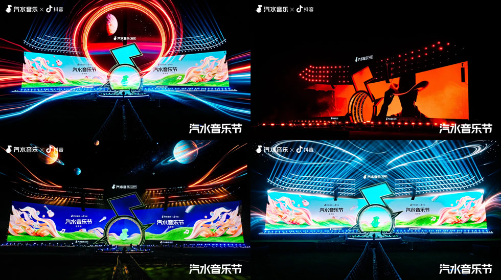本次北京汽水音乐节在空间美学上进行了大胆突破。不同于常规音乐节舞台,此次打造了近百米长、拥有27米挑高的超大空间,并特别设计了5.5米高的“专属云梯”。立体化的舞台布局,让艺人的表演视角由平面转向多维,观众无论是身处前排还是远观,都能体验到极具冲击力的视觉张力。