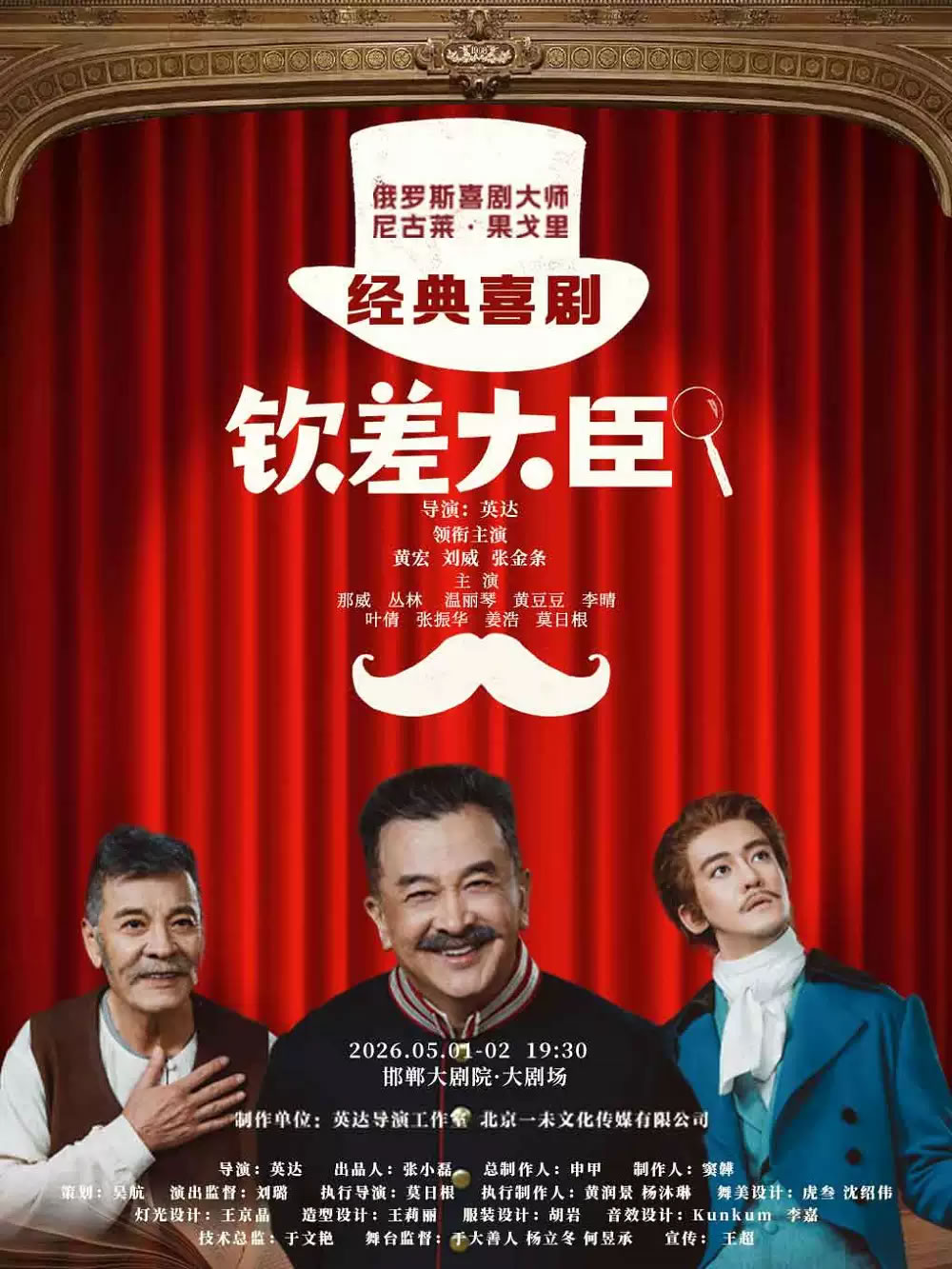 话剧《钦差大臣》改编自俄国文学巨匠果戈理创作的经典喜剧,作品以幽默笔触讽刺了官场腐败与人性弱点,其现实意义跨越时空,呈现出丰富的人性洞察与社会讽刺。本次制作汇聚了国内戏剧界的顶尖力量。导演英达作为中国情景喜剧的开创者,深谙喜剧节奏与世俗百态的呈现,其独特的“英式幽默”与果戈里辛辣的讽刺风格相结合,必将碰撞出精彩的火花。两家制作方均创作出优秀、经典话剧,强强联合,致力于打造一出叫好又叫座的舞台精品。
