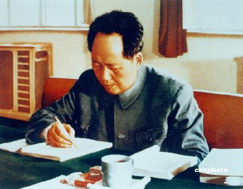 资料图:毛泽东主席审阅《毛泽东选集》第四卷。 中新社发