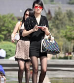 抓拍超短黑裙丝袜美女
