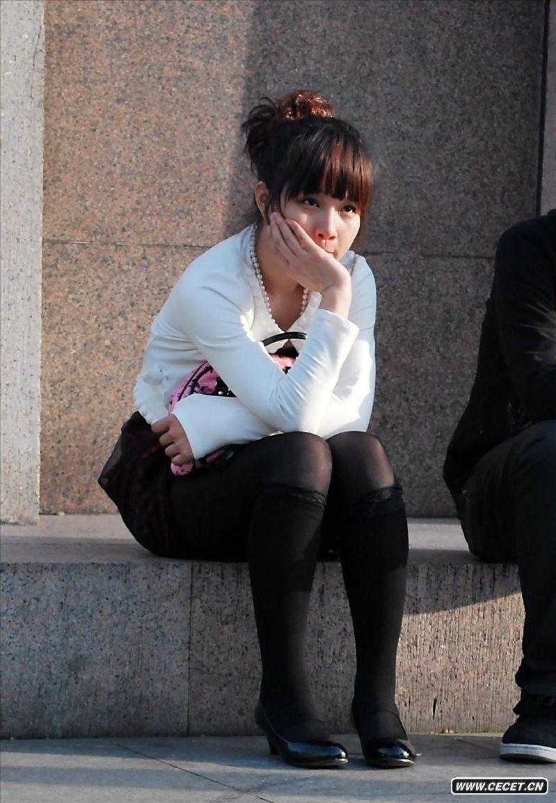 路边休息的大眼睛女生