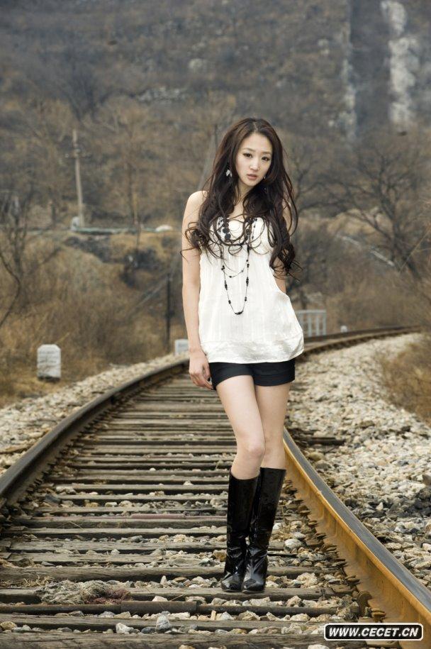 山区里的时尚靓丽美女