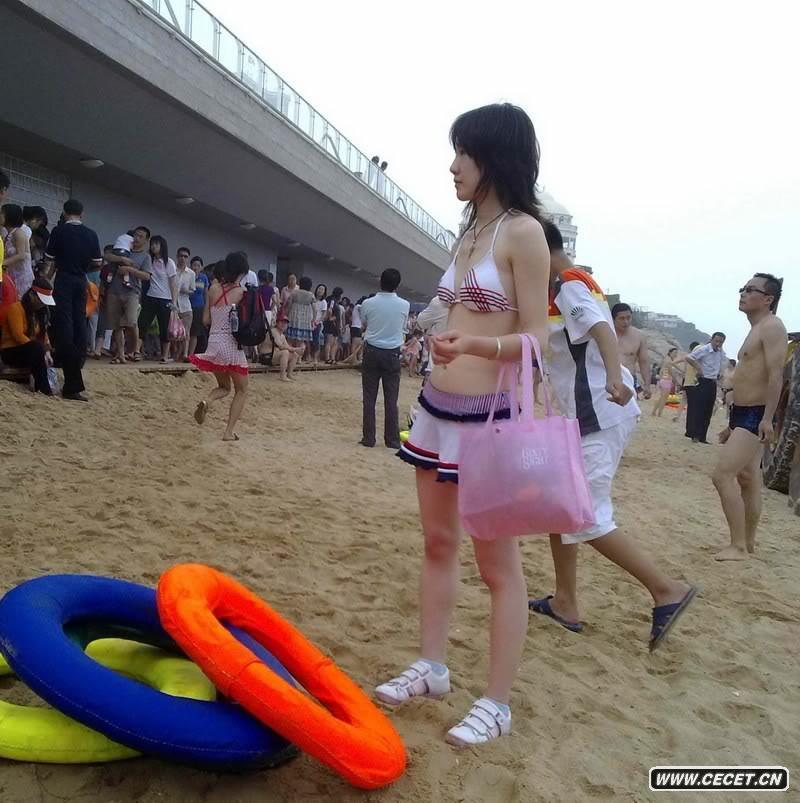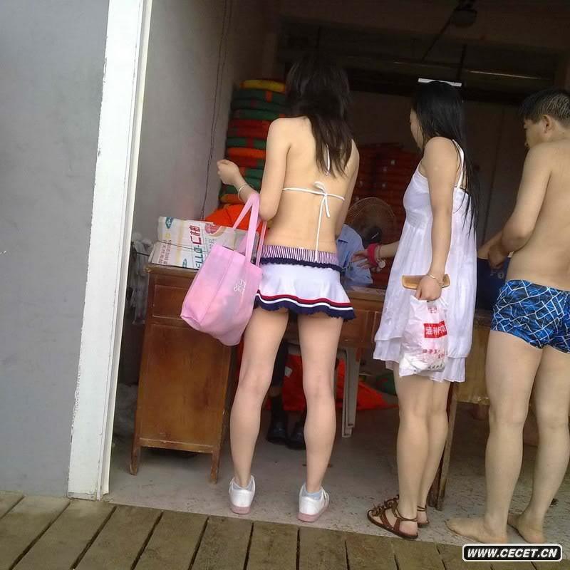 景区抓拍的清凉露背装