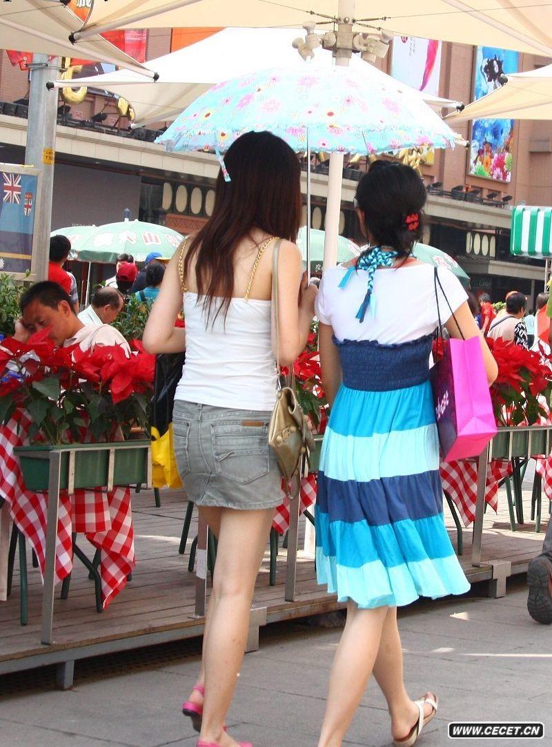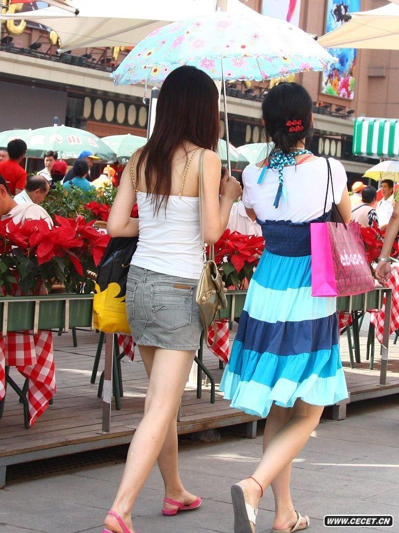 小吃街抓拍的两个热裤